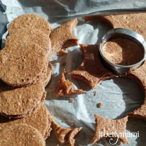 A kihűlt piskótalapokat pogácsaszaggatóval kiszúrjuk.