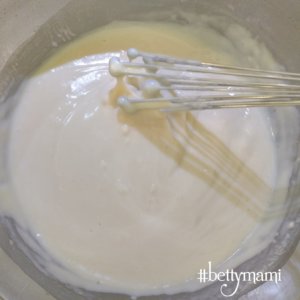 A krémhez a lisztet elkeverjük a tejjel és lassú tűzön gyakori kevergetéssel sűrűre főzzük.