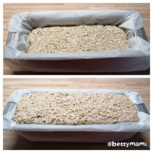 ~ A kovászt elkeverjük a vízzel és hozzáadjuk a leforrázott zabpelyhet, 250g teljes kiőrlésű tönkölylisztet. Letakarva kb. 4-6 órát állni hagyjuk.